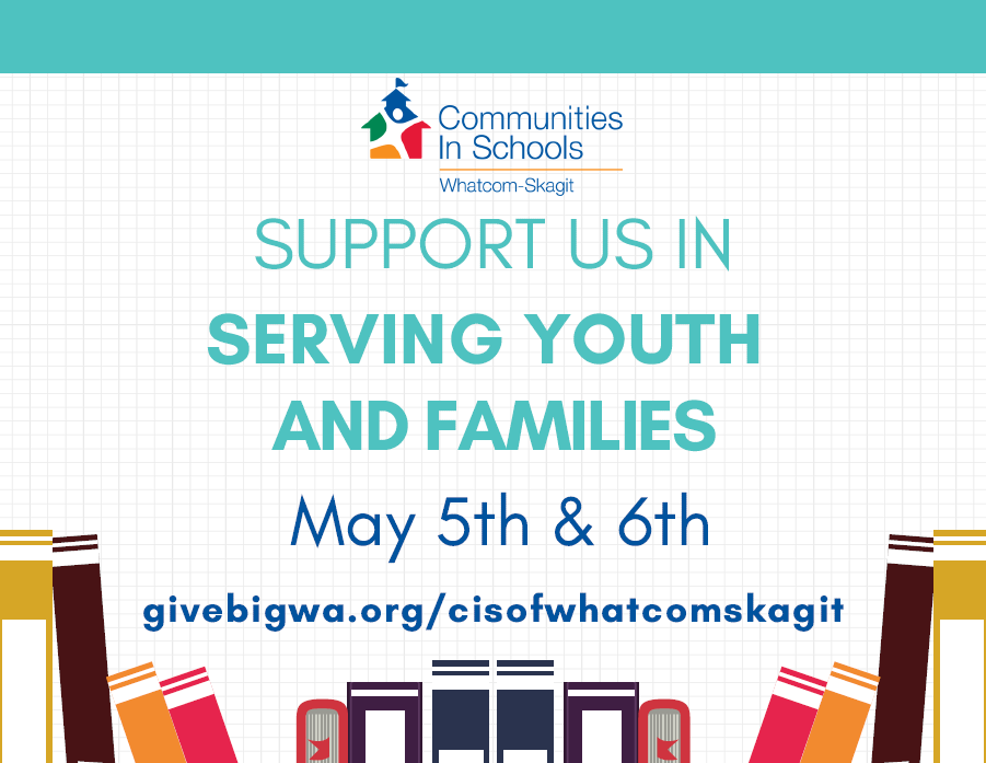For the first time, we are participating in #GiveBigWA, a regional online fundraiser. Visit givebigwa.cisofwhatcomskagit to donate on May 5th and 6th. Help spread the word about this opportunity to make a difference for youth and families from Blaine to Mount Vernon!