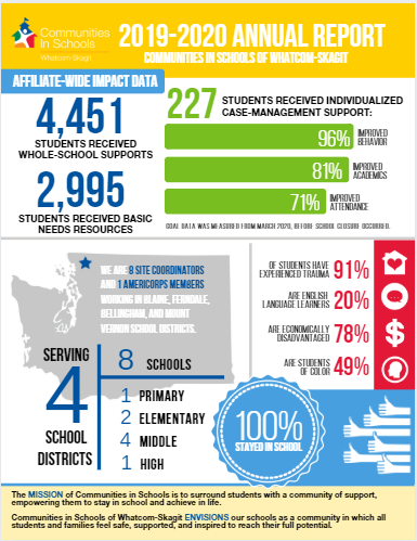 CIS of Whatcom-Skagit has grown tremendously over the past few years. We have continued to provide meaningful, individualized services and support that meet urgent and immediate needs throughout the community health crisis of the COVID19 pandemic. Most important of all, we have maintained our high standards of student success: